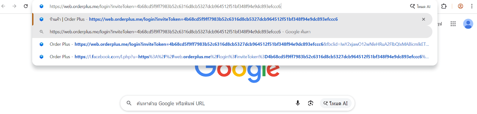 ขั้นตอนที่ 2 : หลังจากนั้น Copy ลิงก์ (เท่านั้น) ที่แอดมินให้ไปวางที่ google หรือ safari แล้ว enter จะเจอร้าน