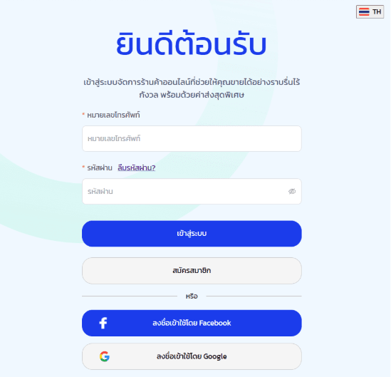 ขั้นตอนที่ 4 : ระบบจะกลับไปที่หน้าหลัก เข้าสู่ระบบอีกครั้ง ให้ลูกค้ากรอกข้อมูล เบอร์โทรศัพท์ และรหัสผ่านใหม่ที่ตั้งไว้ได้เลย